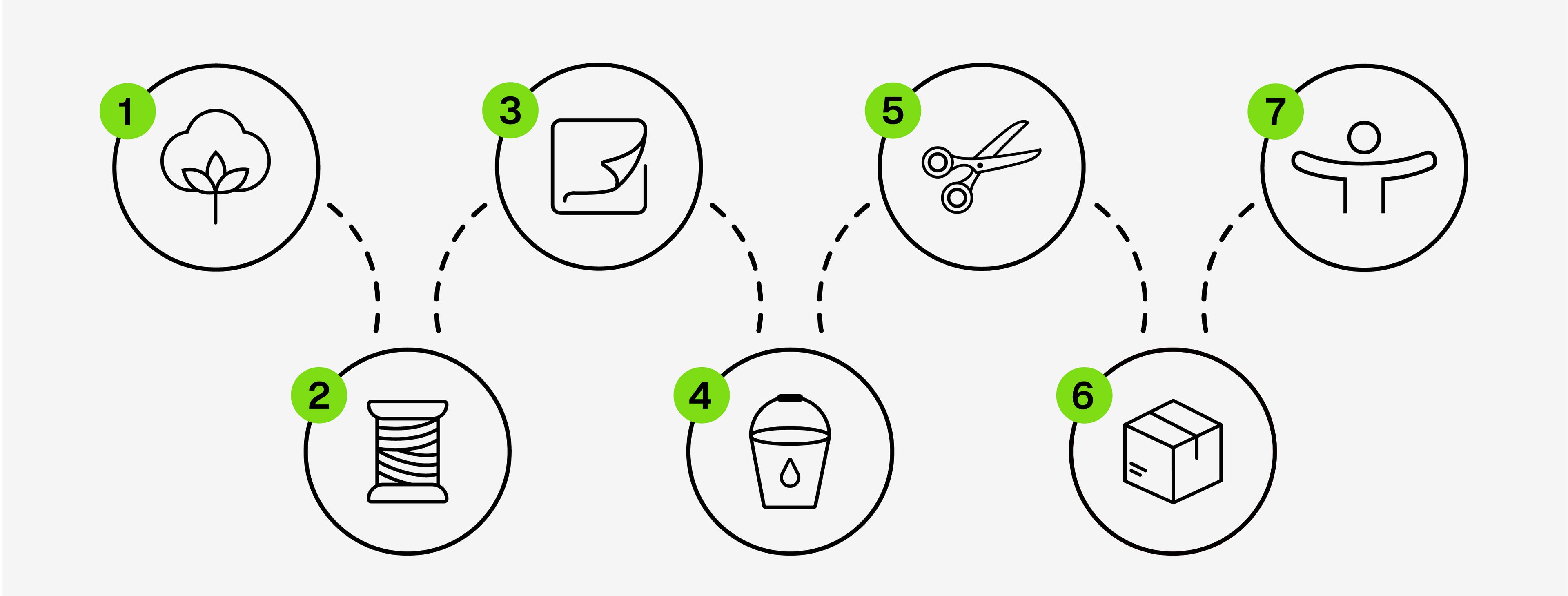 (1) Unsere Fairtrade-zertifizierte Bio-Baumwolle kommt momentan aus Burkina Faso. (2) In Belgien wird sie bei der Firma Utexbel zu feinem Garn versponnen. (3) Auf der Schwäbischen Alb entsteht daraus bei der Strickerei Herter Edelweiss Jersey der Stoff, der anschließend (4) bei Comazo in Albstadt gebleicht, gefärbt und veredelt wird – umweltfreundlich und nach GOTS-Standard. (5) Genäht wird in den Comazo-Nähereien in Rumänien, nach den BSCI-Richtlinien für faire Arbeitsbedingungen. Alle Produktionsschritte sind nach ISO 9001 rückverfolgbar, und Comazo ist seit 2017 PETA-Approved Vegan.